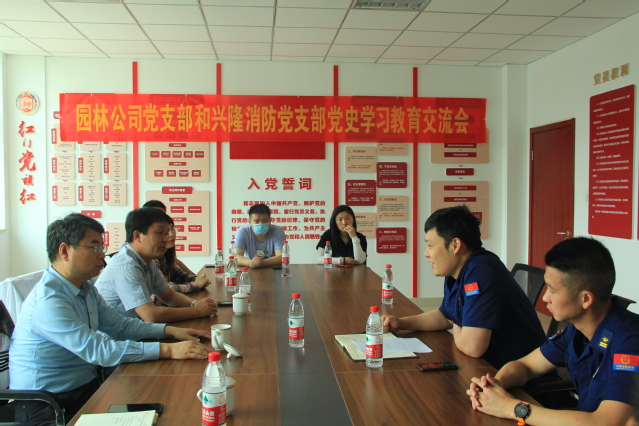 首先開始的是黨史學(xué)習(xí)教育交流會(huì),雙方就黨建品牌培育工作進(jìn)行了交流,興隆消防黨支部在建鄴消防救援大隊(duì)“紅門黨旗紅”黨建品牌建設(shè)牽引下,強(qiáng)堡壘、抓作風(fēng)、帶隊(duì)伍,保障了中心任務(wù)。園林公司黨支部以“鑄紅心·享園林”黨建品牌建設(shè)為牽引,凝聚思想、開拓創(chuàng)新,推動(dòng)公司高質(zhì)量發(fā)展。之后,雙方就黨史學(xué)習(xí)教育開展情況進(jìn)行了交流,并提出要進(jìn)一步發(fā)揮雙方優(yōu)勢和特長,加強(qiáng)交流與協(xié)作,雙向促進(jìn)、共同提高。