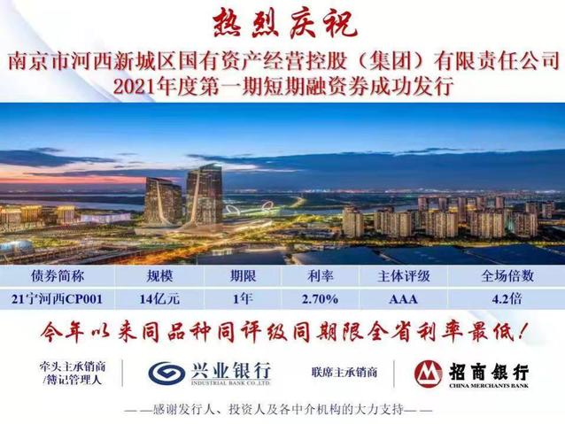 南京市河西新城區(qū)國(guó)有資產(chǎn)經(jīng)營(yíng)控股(集團(tuán))有限責(zé)任公司(以下簡(jiǎn)稱“河西集團(tuán)”)成功發(fā)行2021年度第一期短期融資債券。