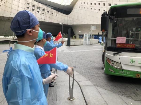 圖▲國青酒店管理層及員工送別集中醫(yī)學(xué)觀察的市民朋友