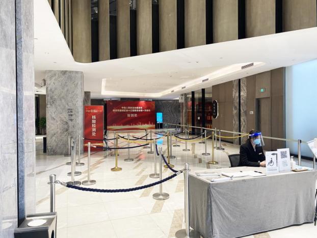 為落實疫情防控要求,營造安全與會環(huán)境,酒店對接待服務實行“會議閉環(huán)”專項方案。結(jié)合會議需求,充分利用自身場地優(yōu)勢,制定嚴格的閉環(huán)人員管控及后勤保障方案,將會議中心、部分大堂區(qū)域及客房樓層劃入閉環(huán)管理,為與會人員規(guī)劃獨立的行徑動線,并提前進行清潔消殺,同時也保持酒店其余區(qū)域正常開放。酒店組織固定團隊完成核酸檢測后進入閉環(huán)服務,與開放區(qū)域保持雙軌運營。