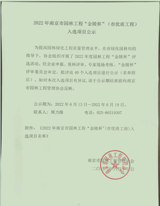 近日,由河西集團新城公司溧水項目部代建的溧水區(qū)秦淮大道改造景觀提升工程順利通過南京市園林工程管理協(xié)會組織的”金陵“”評審,成功入選2022年南京市園林工程“金陵杯”(市優(yōu)質(zhì)工程)項目名單。