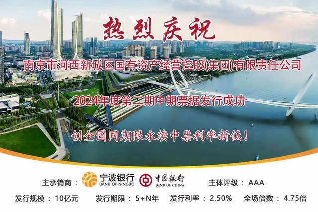 近日,河西集團(tuán)成功發(fā)行2024年度第二期中期票據(jù)。本次發(fā)行規(guī)模10億元,期限5+N年,票面利率2.5%,全場(chǎng)倍數(shù)4.75倍,創(chuàng)全國(guó)同期限永續(xù)中票利率新低。