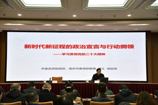會(huì)上,高信奇教授以《新時(shí)代新征程的政治宣言與行動(dòng)綱領(lǐng)——學(xué)習(xí)貫徹黨的二十大精神》為題,主要從“回顧過(guò)去:過(guò)去五年的工作和新時(shí)代十年的偉大變革;展望未來(lái):黨的二十大精神的核心要義;把握當(dāng)下:學(xué)習(xí)好宣傳好貫徹好黨的二十大精神”等三個(gè)方面,深入闡述了黨的二十大精神的深刻內(nèi)涵。本次宣講內(nèi)涵豐富、案例鮮活、深入淺出,對(duì)于集團(tuán)全體黨員干部職工全面理解、準(zhǔn)確把握和深入貫徹黨的二十大精神具有很強(qiáng)的指導(dǎo)意義。