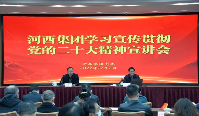 根據(jù)中央和省市委、市國(guó)資委黨委部署要求,12月2日下午,河西集團(tuán)召開(kāi)學(xué)習(xí)宣傳貫徹黨的二十大精神宣講會(huì),邀請(qǐng)市委宣講團(tuán)成員、市委黨??蒲刑幪庨L(zhǎng)高信奇教授做專(zhuān)題宣講,進(jìn)一步引導(dǎo)集團(tuán)廣大黨員干部職工全面深入學(xué)習(xí)宣傳貫徹黨的二十大精神,切實(shí)把思想和行動(dòng)統(tǒng)一到黨的二十大精神上來(lái),更加深刻領(lǐng)悟“兩個(gè)確立”的決定性意義,不斷增強(qiáng)“四個(gè)意識(shí)”、堅(jiān)定“四個(gè)自信”、做到“兩個(gè)維護(hù)”。會(huì)議由集團(tuán)黨委副書(shū)記、董事繆昌根主持。集團(tuán)領(lǐng)導(dǎo)、全體中層干部及集團(tuán)下屬各公司黨務(wù)工作者參加會(huì)議。