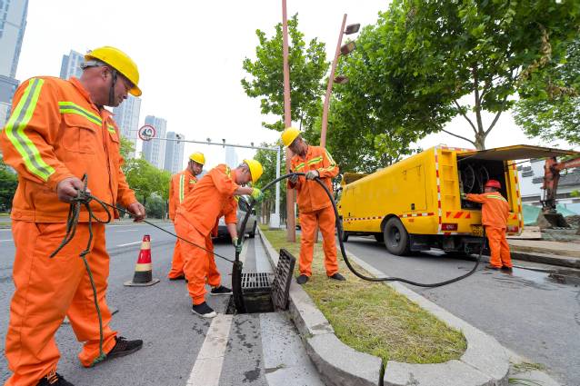 本次防汛練兵分為兩個部分進行,第一部分是出現(xiàn)道路積淹水險情時調(diào)派泵車,應急抽排使道路消險;第二部分是消險完成后對管道進行排查并清疏。演練共出動防汛人員35人,防汛車輛8輛。整個演練過程緊張、有序,各項安保措施落實到位。