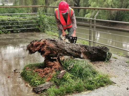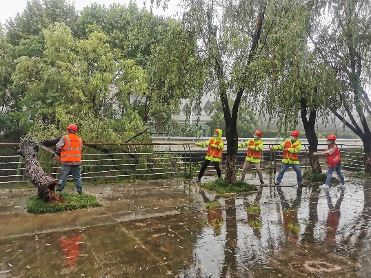 陣風10級以上、平均風力8級,接連數(shù)天雨水不斷,7月27日,“煙花”中心過境我市,為進一步將“我為群眾辦實事”實踐活動落到實處,進一步體現(xiàn)黨員的先鋒帶頭作用,公司迅速組建黨員先鋒隊,協(xié)助綠化養(yǎng)護人員巡查檢查、清理斷枝、搶險倒伏樹木。
