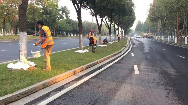 公司嚴(yán)格要求刷白“精細(xì)化”養(yǎng)護(hù)標(biāo)準(zhǔn),首先根據(jù)喬木、花卉類樹(shù)木的特性,區(qū)別了刷白高度;其次,在刷白時(shí)采取了墊襯措施,確保地面和地被植物干凈美觀;最后,按照止口平整,高度一致,刷白均勻,不留死角的要求,在城區(qū)多主干道和公園同時(shí)開(kāi)展刷白工作。