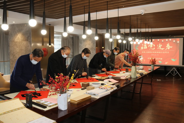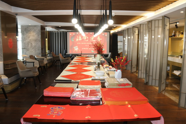 寫(xiě)春聯(lián)、貼春聯(lián)是中國(guó)春節(jié)的傳統(tǒng)習(xí)俗,也是辭舊迎新過(guò)大年的一種象征。為弘揚(yáng)中華書(shū)法藝術(shù)與傳統(tǒng)節(jié)日文化,給市民、住店客人送上新春祝福。近日,河西集團(tuán)青奧城公司金帆萬(wàn)源酒店開(kāi)展“福虎迎春”2022新年納福公益筆會(huì),來(lái)自南京的書(shū)畫(huà)名家應(yīng)邀出席。