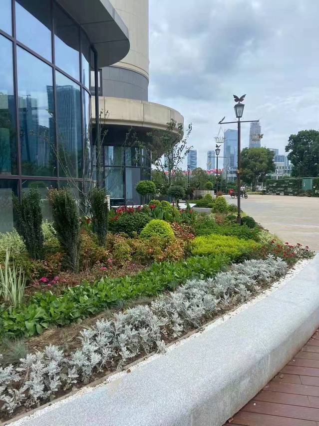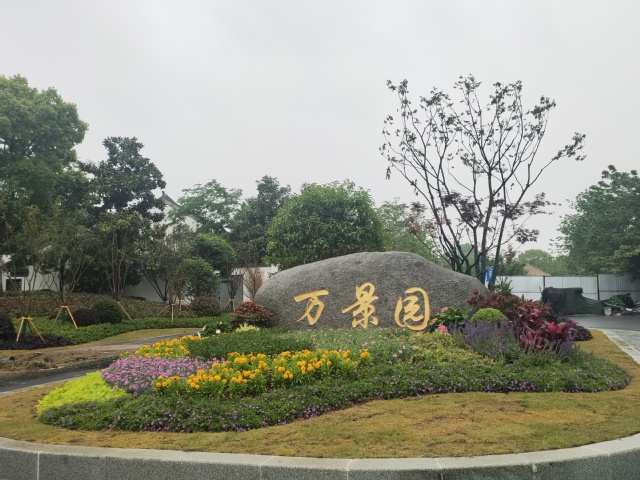萬景園北入口項目將原始花壇改造成弧形整石花壇,常夏石竹、八仙花、女貞球等彩葉花灌木鋪滿在景觀石的四周,形成植物品種豐富、層次分明的小型花境。入口處增設標有“萬景園”字樣高達12米的立牌,高大醒目,與魚嘴公園、青年文化公園、綠博園形成了統(tǒng)一的濱江風光帶入口標識。