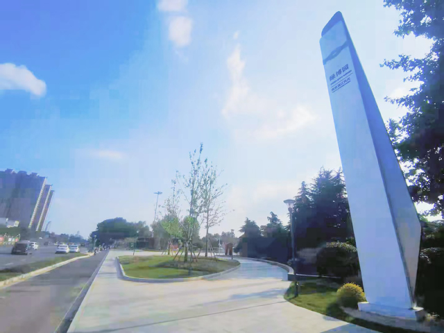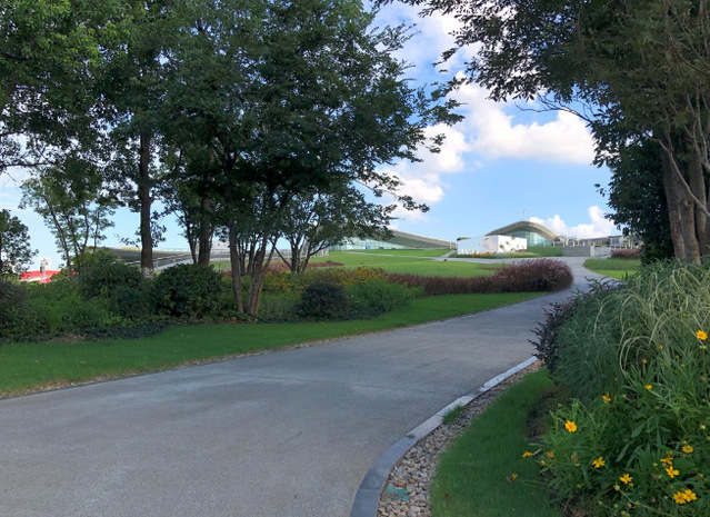 綠博園東入口項目在綠植選用上注重運用彩葉樹種,中山紅、佛甲草、南天竹等彩葉喬灌木,襯托在綠茵茵的草坪上,增強了觀賞效果。大面積的花崗巖鋪裝,弧形路牙石花壇、多色植物搭配,形成了空間開闊、環(huán)境優(yōu)美的公園出入口景觀。
