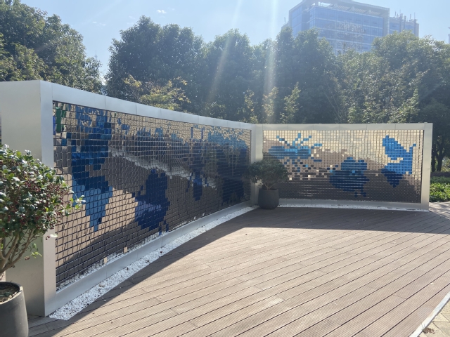 該項目位于南京青奧村,施工面積3000平方米,項目以書和自然(昆蟲)為設計理念建成了一個全方位體驗的多感官廣場:在視覺上,活字印刷墻隨光影的變化能夠顯現(xiàn)出千字文的內容;在聽覺上,風動墻和昆蟲互動裝置鋁會發(fā)出特有的聲音;在嗅覺上,垂直綠化墻體上的綠植在開花時散發(fā)出陣陣花香;在觸覺上,文字互動裝置撥動雙色滾珠時,可組成不同文字或圖案。