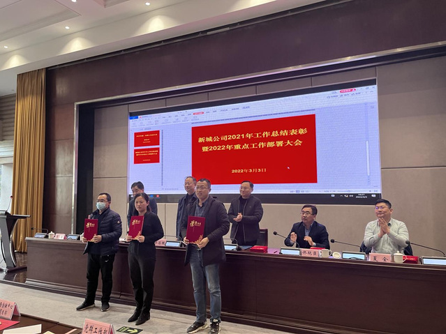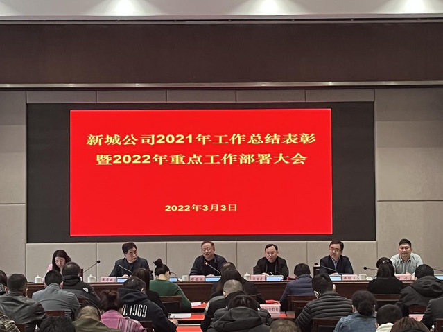 3月3日下午,新城公司召開2021年工作總結表彰暨2022年重點工作部署大會,河西集團黨委副書記、董事繆昌根,新城公司領導班子成員及全體員工參加。