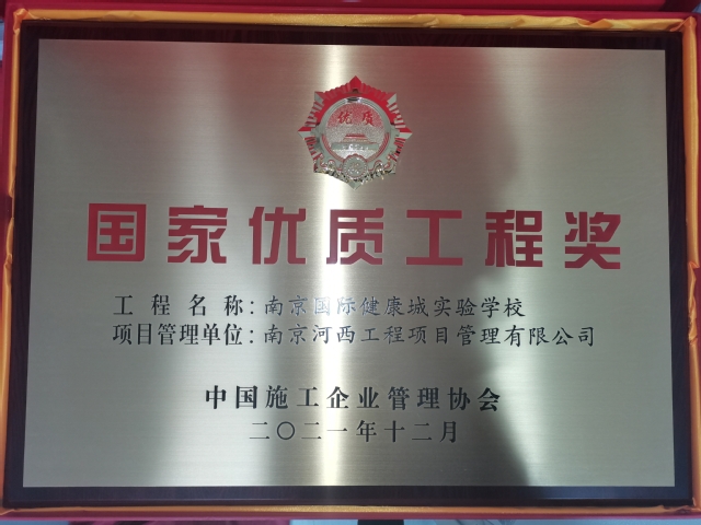 近期,河西集團(tuán)新城公司所屬南京河西工程項(xiàng)目管理有限公司代建的南京國(guó)際健康城實(shí)驗(yàn)學(xué)校項(xiàng)目項(xiàng)目喜獲“2020-2021年國(guó)家優(yōu)質(zhì)工程獎(jiǎng)”。