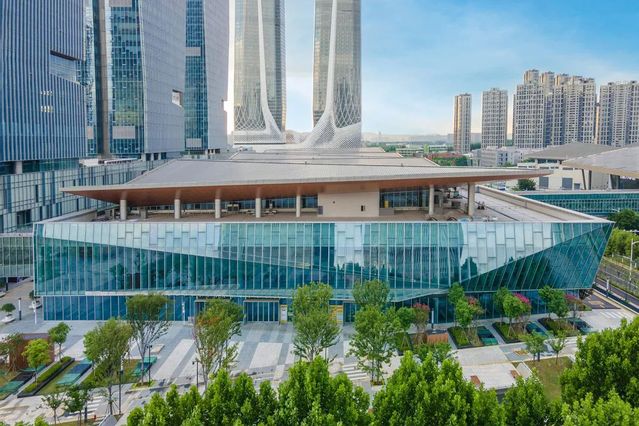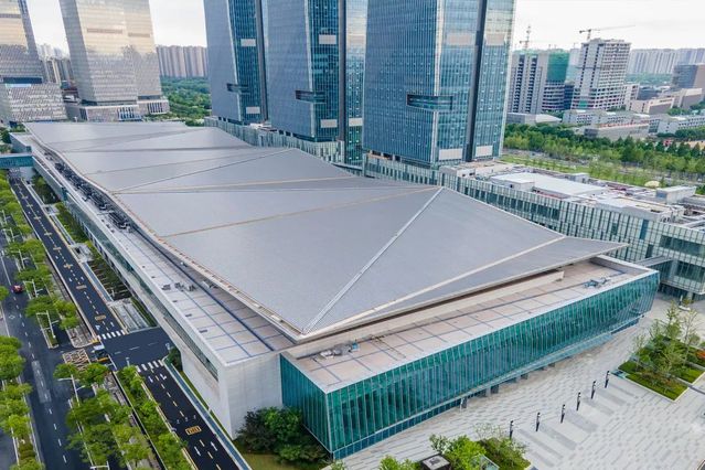 南京國(guó)際博覽中心三期1#樓及大地下室工程位于南京河西新城區(qū),北側(cè)緊鄰南京國(guó)際博覽中心一、二期展館,總建筑面積約21萬(wàn)㎡,地上2層,建筑面積約7萬(wàn)㎡,由展廳、商業(yè)、卸貨區(qū)等用房組成;地下2層,建筑面積約14.2萬(wàn)㎡,為車(chē)庫(kù)、設(shè)備用房等。工程于2017年4月20日開(kāi)工,2021年2月1日竣工??⒐ず?,河西集團(tuán)所屬南京國(guó)際博覽中心一、二、三期場(chǎng)館延江東中路連成一片,以華東最大的會(huì)展中心展現(xiàn)在世人眼前。